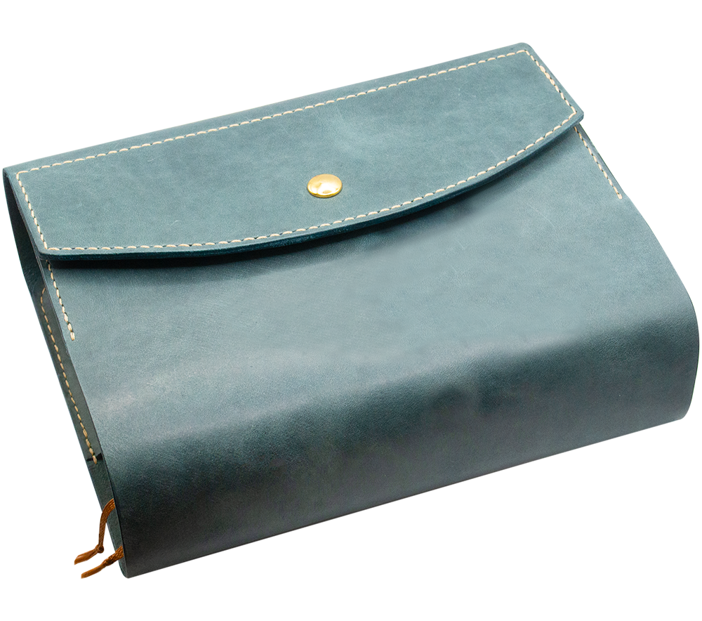 PERGAMON(ペルガモン) 聖書カバー 本革 中型『サビアサギ』シリーズ かわいい ハンドメイド レザー 錆浅葱色 巻き型タイプ 皮 おしゃれ 手作り